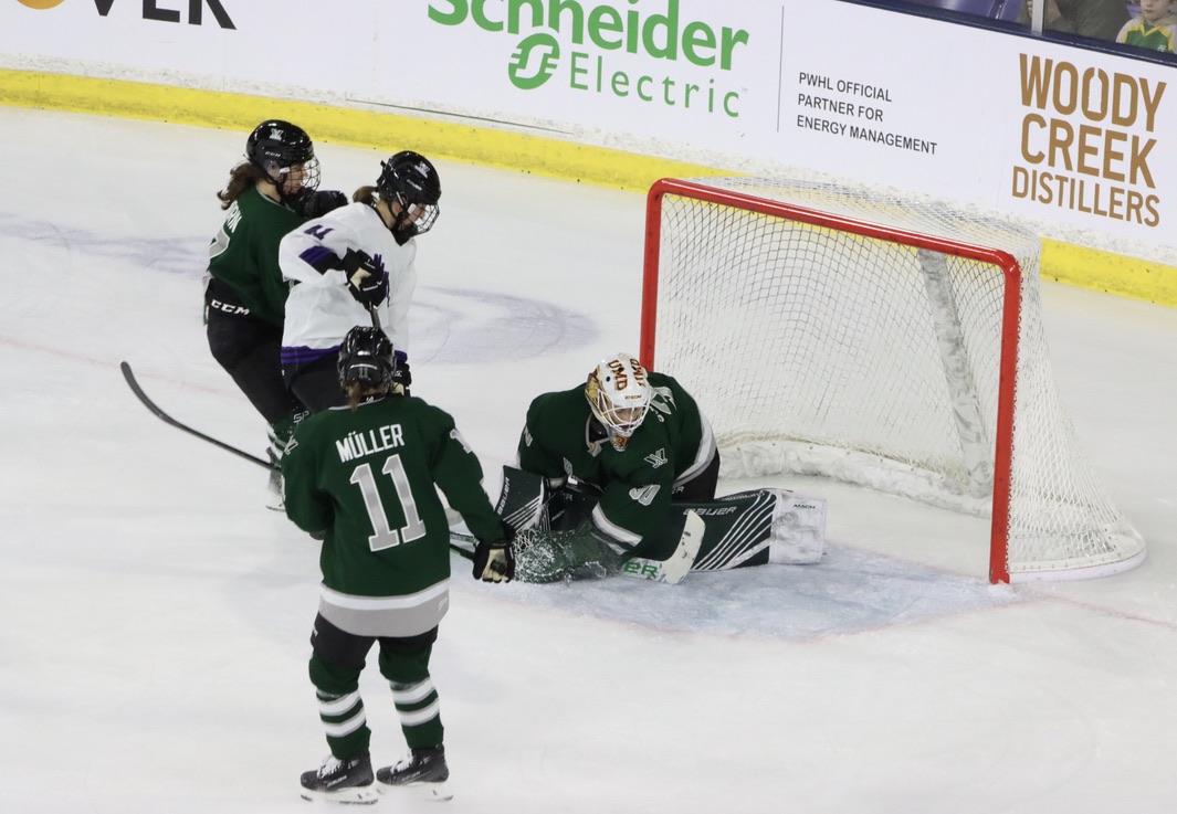 The action picked up quickly in the first, with Kaleigh Fratkin scoring 5:35 in to give Boston the 1-0 lead. Jamie Lee Rattray and Jessica Digirolamo picked up the assists. Taylor Girard then scored just 30 seconds later for Boston, assisted by Shiann Darkangelo and Nicole Kosta. Brittyn Fleming put Minnesota on the board at 13:07 into the first, making it a 2-1 game. A minute and 20 seconds later, Alina Müller scored her second goal of the season to increase Boston’s lead to 3-1. The second period went scoreless until the final minute when Grace Zumwinkle netted her sixth goal of the year for Minnesota at 19:22. The third period was much of the same, with no goals scored until the final minute. Kendall Coyne Schfield scored her second goal of the season at 19:07 with the goalie pulled to send the contest into overtime.